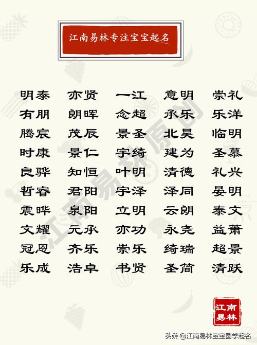 :家长也可根据孩子的家庭背景、性别特点和未来发展方向,选择更符合个性和喜好的名字。一些建议: