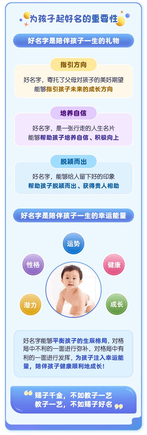 婴儿的名字是一份礼物,是父母留给孩子的一份珍贵的财富。在给孩子起名时,需细心锁定每一个细节,体现出父母的爱与关怀。